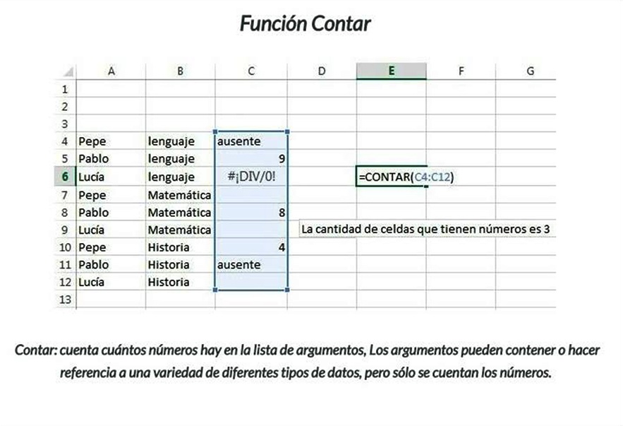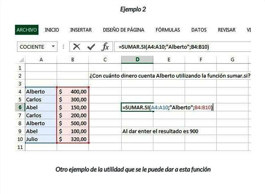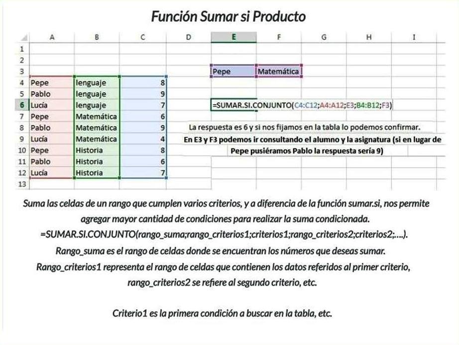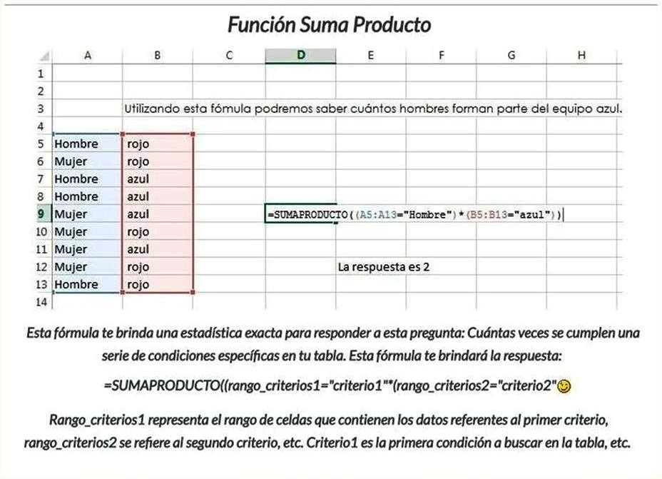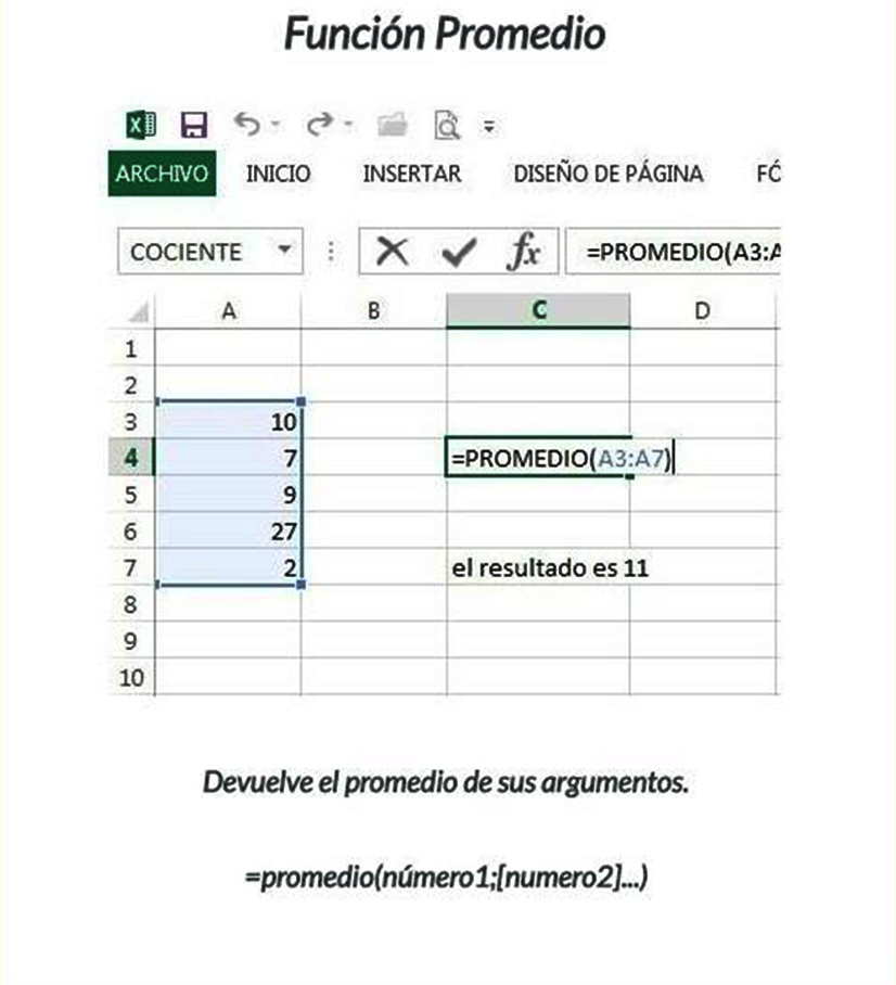 Recordar que el uso de coma «,» o punto y coma «;» varia dependiendo de la configuración regional de cada Pc.