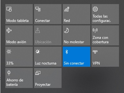 - Activar la función Bluetooth en el PC portátil, para esto ultimo, selecciona el centro de actividades