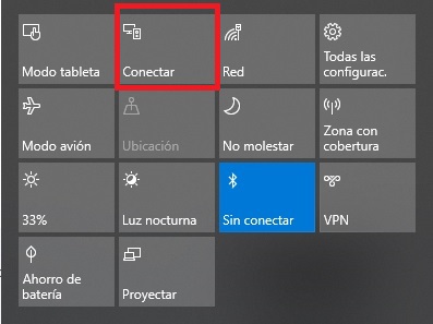 - Luego, con la función bluetooth activada en el PC, en el mismo centro de actividades selecciona la opción Conectar.