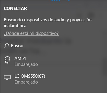 Para este ejemplo yo conecte unos audífonos inalambricos de la marca Huawei modelo AM61 a mi PC portatil. El tiempo que tomo el PC en detectar los audífonos inalambricos para emparejarse fue considerablemente elevado, alrededor de 3 minutos, esto lo comprobe con otra PC portatil de diferente marca y modelo.