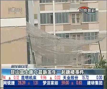 Hace un par de meses, Foxconn instaló redes de seguridad bajo muchas de sus ventanas, para evitar los suicidios de sus empleados, que se precipitaban de un salto al vacío. (No sé si es más triste o surrealista). Tan sumamente macabro resulta ver las redes como las noticias de los suicidios en sí, pero parece que no están cumpliendo su cometido: hace un par de meses, una trabajadora de 22 años consiguió suicidarse.