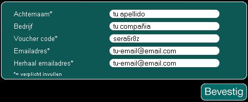 3.- Después de ingresar los datos da clic en el botón Bevestig, seguido de esto aparecerá la información de que se ha enviado la licencia a tu E-mail que has ingresado en el campo de registro.