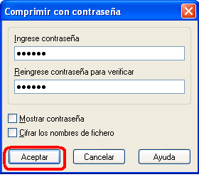Ingresa la contraseña, confírmala y haz clic en Aceptar: