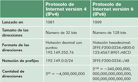La principal diferencia entre IPv4 e IPv6 reside en la cantidad de direcciones IP.Hay algo más de 4.000.000.000 dedirecciones IPv4. En cambio, existenmás de 340.000.000.000.000.000.000.000.000.000.000.000.000 de direcciones IPv6.